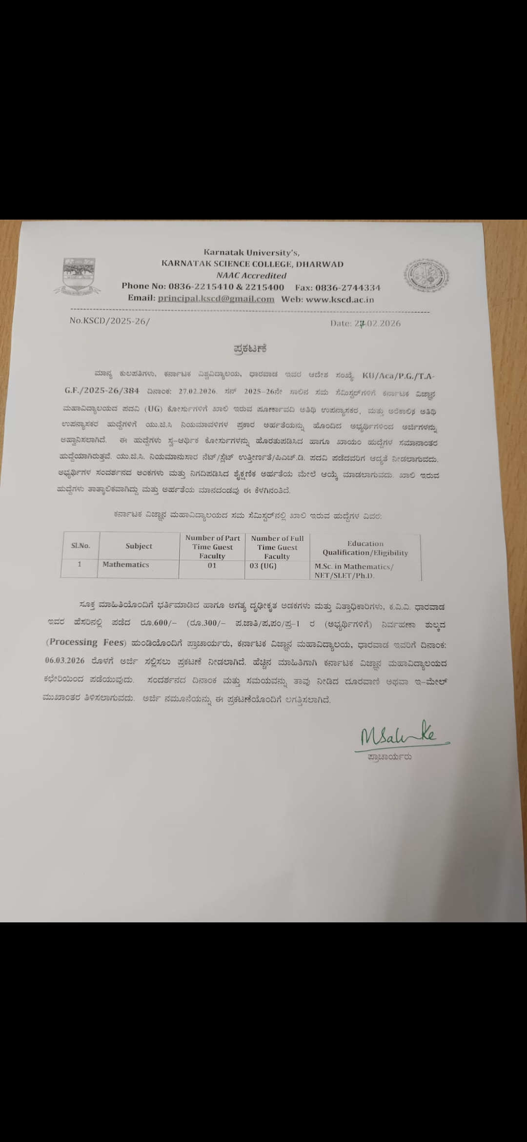2026-02-28 Advertisement for Guest faculty in Mathematics View