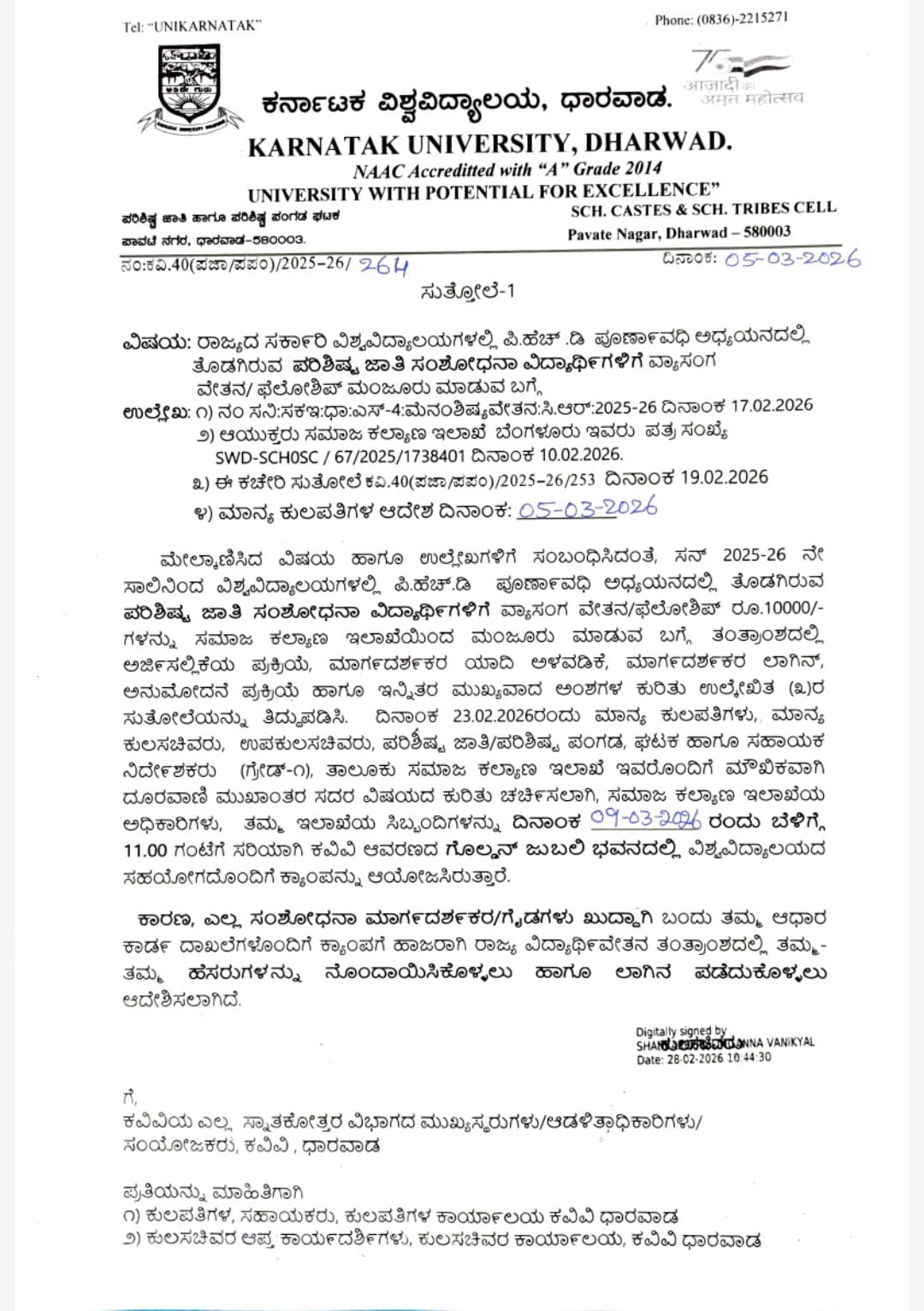 2026-03-06 Important Notification for Research Guides: Regarding Fellowship for SC/ST students View